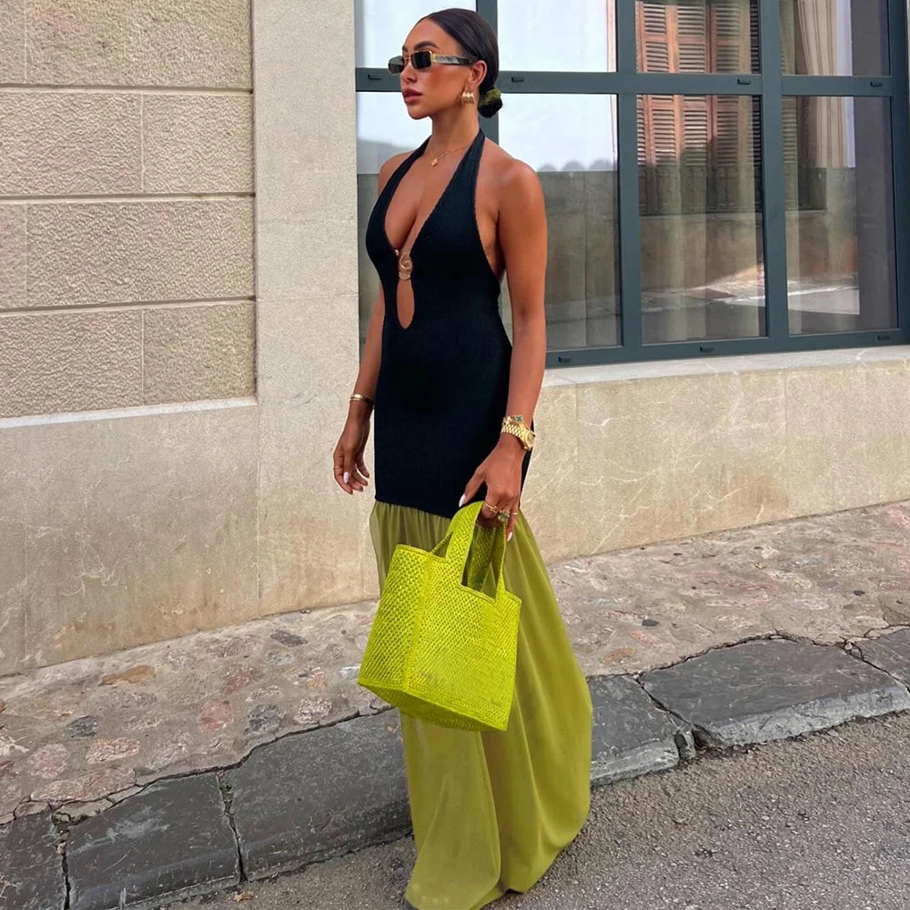 Sexy Halter Backless Cut Out Maxi Dress Women Sleeveless